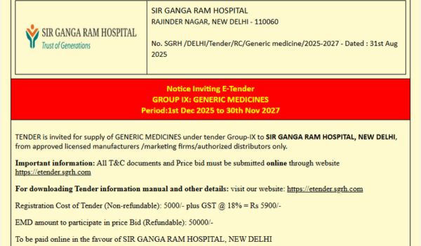 • Notice Inviting E-Tender GROUP IX - GENERIC MEDICINES